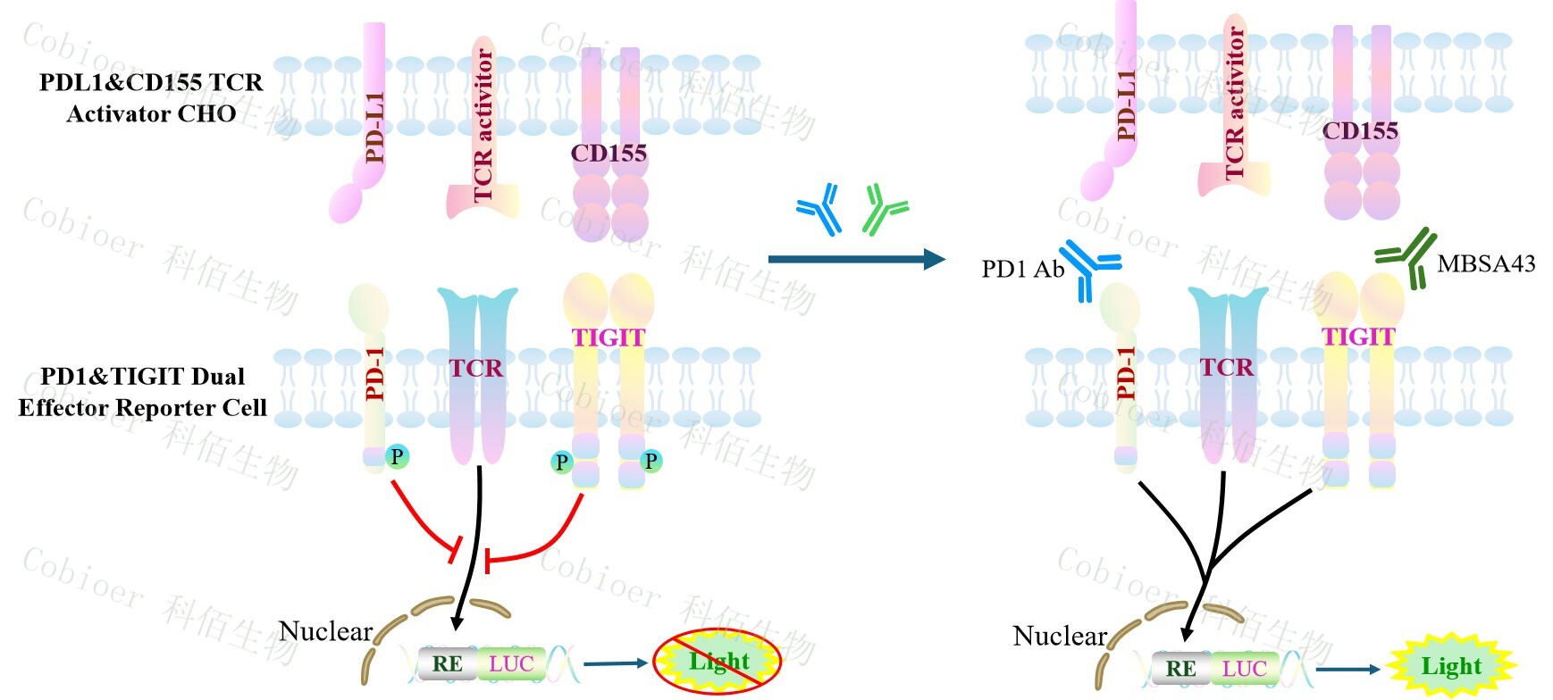 ![]() Figure 1. PD1&TIGIT Dual Effector Reporter Cell 細(xì)胞模型原理圖  |