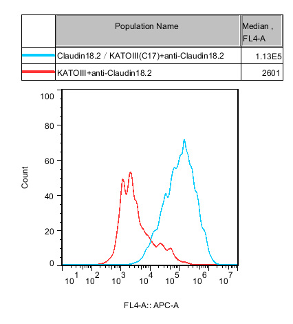 Claudin18.2 KATOIII 細(xì)胞,在 KATOIII 細(xì)胞的基礎(chǔ)上,穩(wěn)定表達人 Claudin18.2。  |