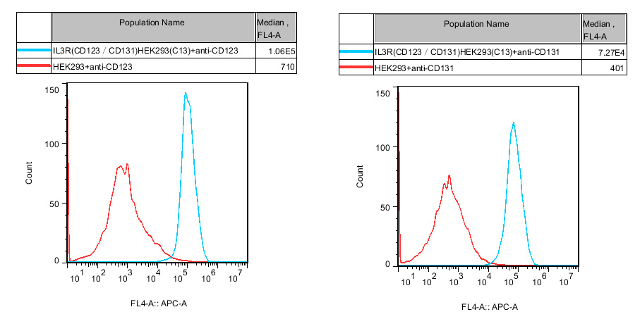 IL3R(CD123/CD131) HEK293 細胞,在 HEK293 細胞的基礎(chǔ)上,穩(wěn)定表 達人 IL3R(CD123/CD131)。  |