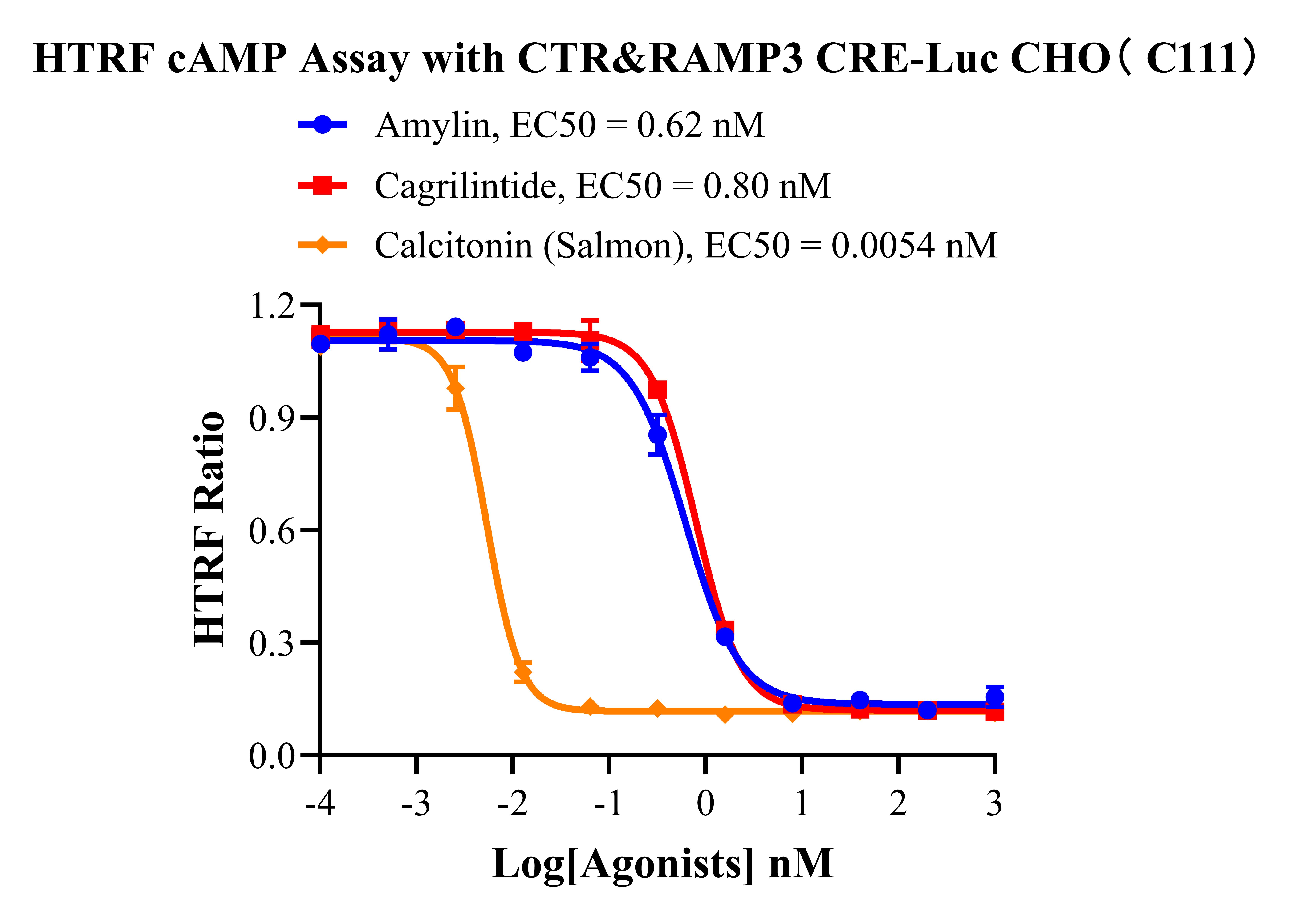 Figure 5. HTRF cAMP Assay with CTR&RAMP3 CRE-Luc CHO (C111).  |