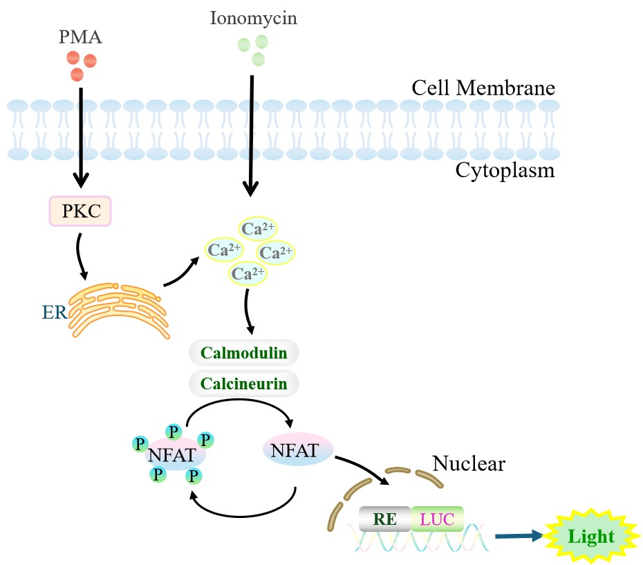Figure 1. NFAT-Luc CHO 細(xì)胞模型原理圖