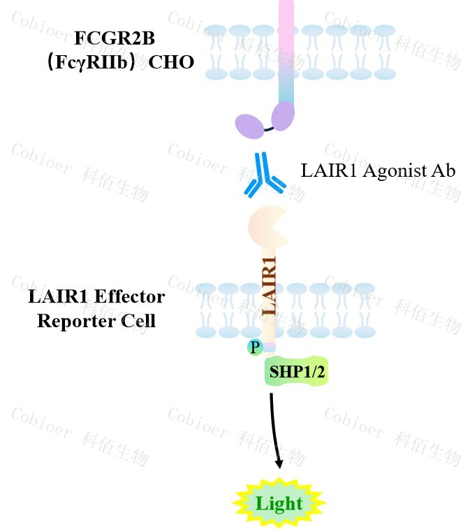 LAIR1 Effector Reporter Cell 報告基因藥靶模型很好的模擬了體內 LAIR1 的信號轉導過程,原理見下圖所示。![]() Figure 1.LAIR1 Effector Reporter Cell 細胞模型原理圖  |