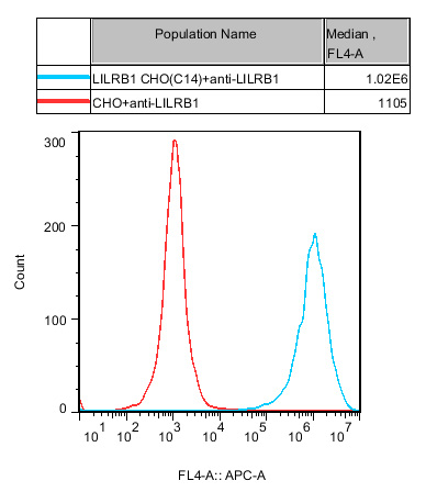 | LILRB1 CHO 細(xì)胞,在 CHO-K1 細(xì)胞的基礎(chǔ)上,穩(wěn)定表達(dá)人 LILRB1。 | |
