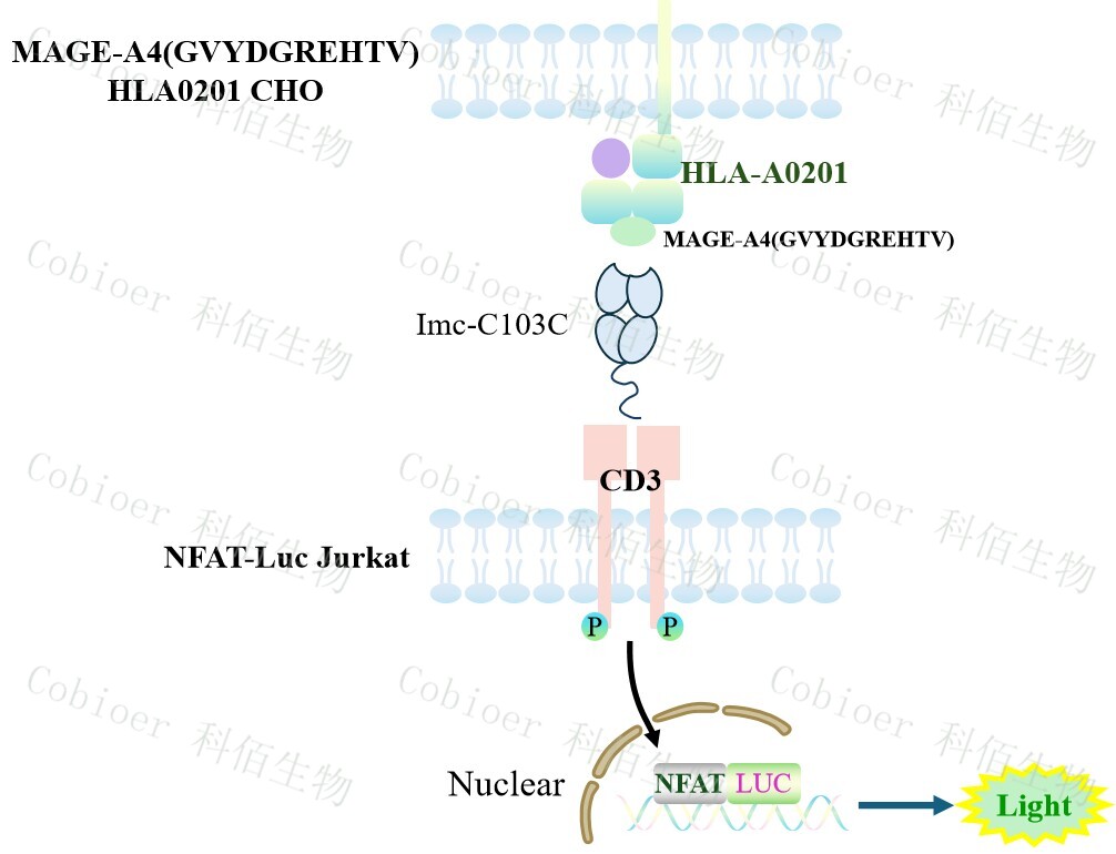 HLA-A*0201-MAGEA4 復(fù)合物是人類白細胞抗原(HLA)Ⅰ類分子與 MAGEA4 抗原肽的復(fù)合體,屬于主要組織相容性復(fù)合體(MHC)Ⅰ類家族成員。該復(fù)合物常用于 T 細胞 受體(TCR)療法,通過激活 T 細胞以識別并殺傷腫瘤細胞,原理見下圖所示。![]() Figure 1. MAGE-A4(GVYDGREHTV) HLA0201 CHO 細胞模型圖  |