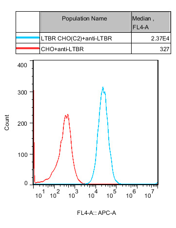 | LTBR CHO 細(xì)胞,在 CHO-K1 細(xì)胞的基礎(chǔ)上,穩(wěn)定表達(dá)人 LTBR。 | |