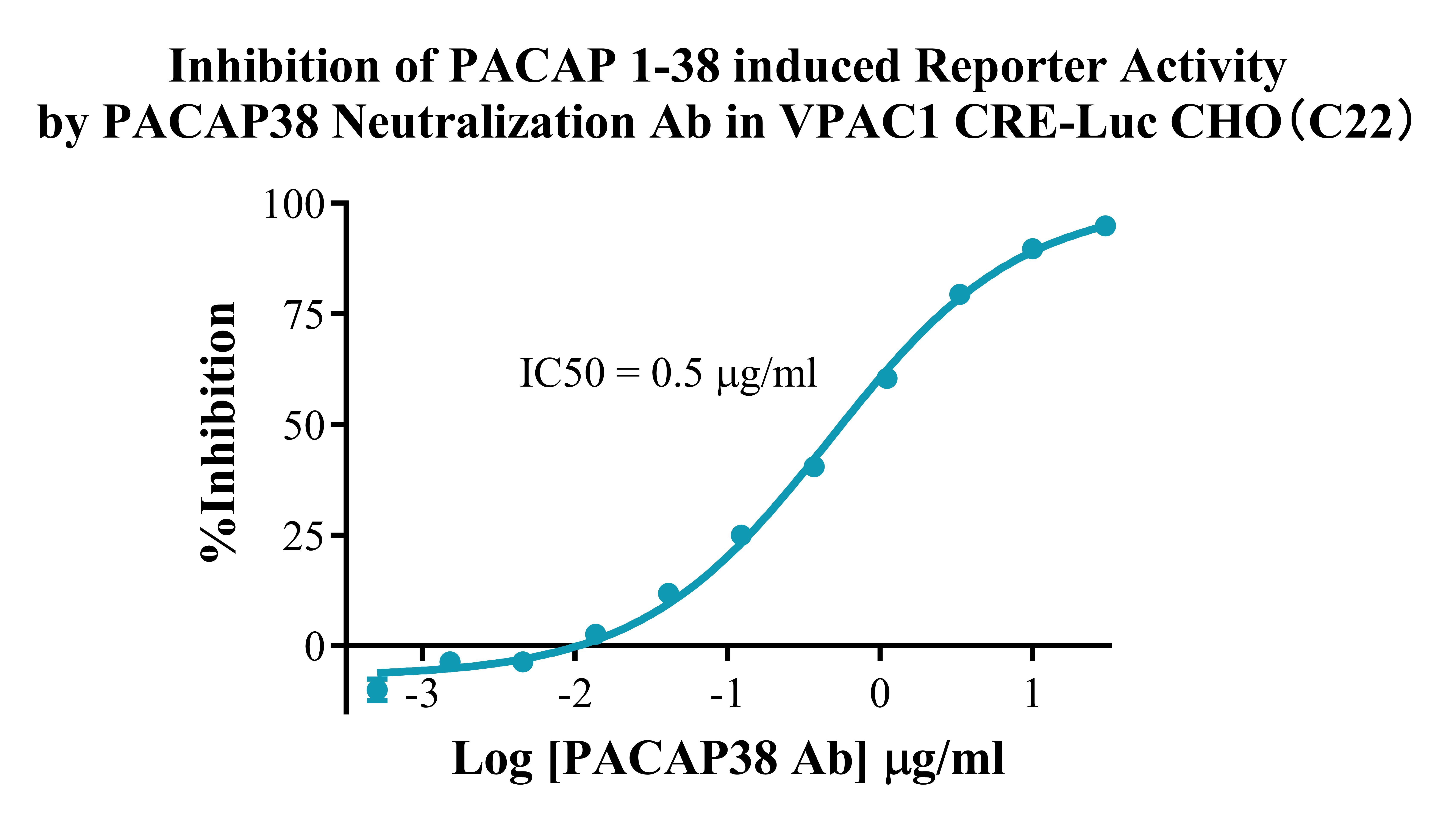 V. Representative Data![]() Figure 2. Recombinant VPAC1 CRE-Luc CHO stably expressing VPAC1. ![]() Figure 3. Dose Response of Agonists in VPAC1 CRE-Luc CHO(C22). ![]() Figure 4.Inhibition of PACAP 1-38 induced Reporter Activity by PACAP38 Neutralization Ab in VPAC1 CRE-Luc CHO(C22).  |