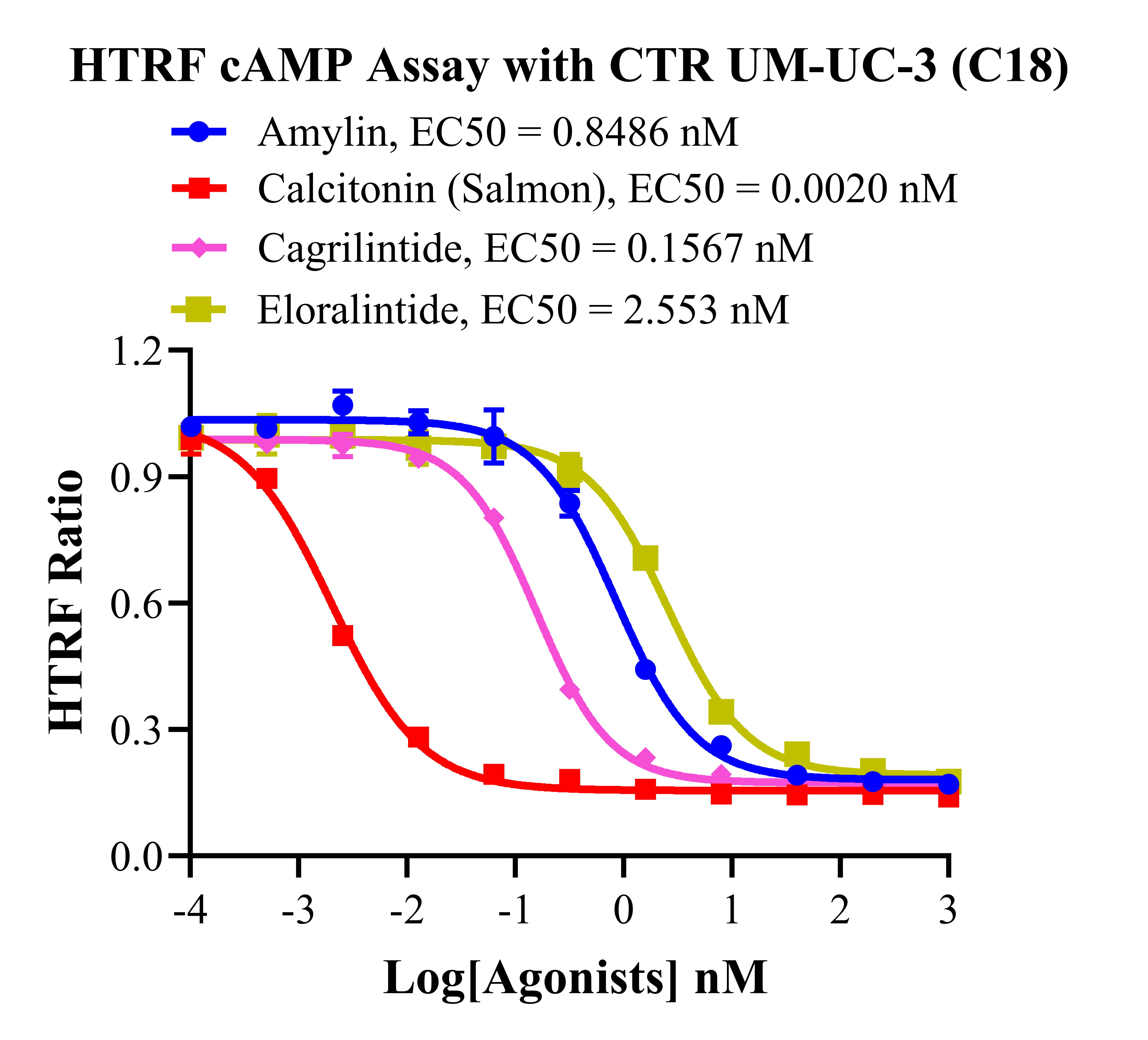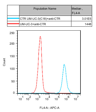 CTR UM-UC-3 細胞藥靶模型很好的模擬了體內(nèi) CTR 的信號轉(zhuǎn)導過程,原理見下圖所示。![]() Figure 1. CTR UM-UC-3 細胞模型原理圖  |