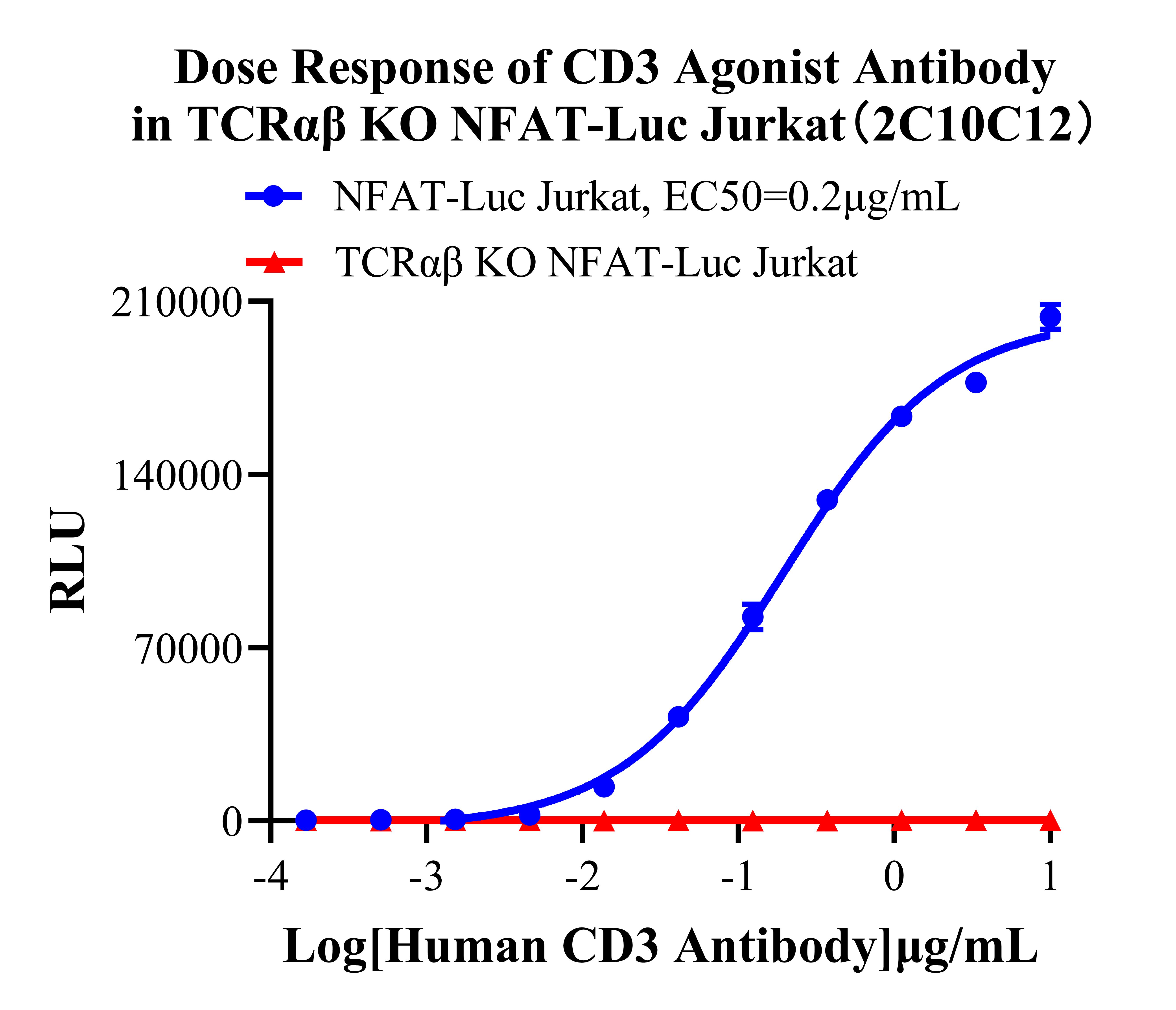 ![]() Figure 7. Dose Response of CD3 Agonist Antibody in TCRαβ KO NFAT-Luc Jurkat(2C10C12).  |