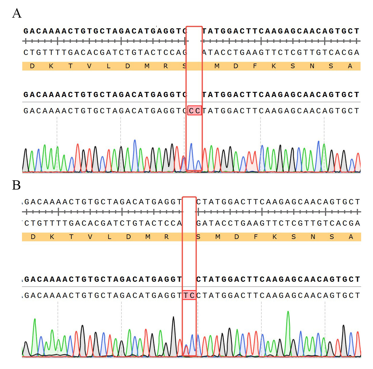 ![]() Figure 3. WB of TCRαβ KO NFAT-Luc Jurkat. ![]() Figure 4. Recombinant TCRαβ KO NFAT-Luc Jurkat stably expressing TCRαβ. ![]() Figure 5. TRAC KO 的測(cè)序結(jié)果 A:chr14-22547665--CC(TRAC:p.M54Lfs*57) TRAC(ENST00000611116.2):c.158_159insCC