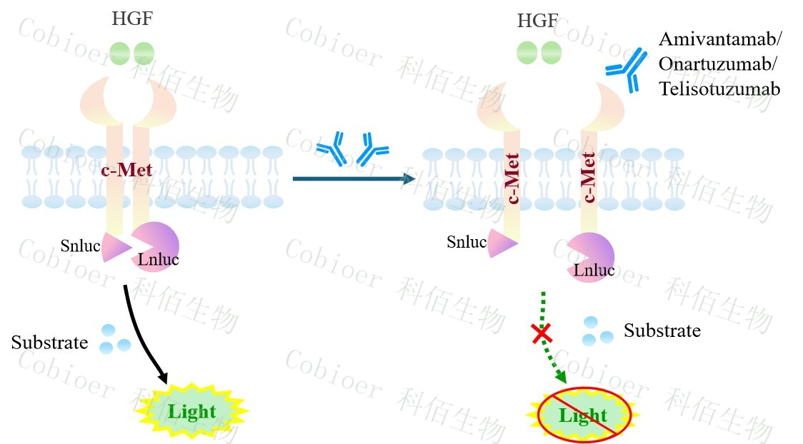 MET Dimerization CHO 報(bào)告基因藥靶模型很好的模擬了體內(nèi) MET 的信號轉(zhuǎn)導(dǎo)過程, 原理見下圖所示。![]() Figure 1. MET Dimerization CHO 細(xì)胞模型原理圖 |