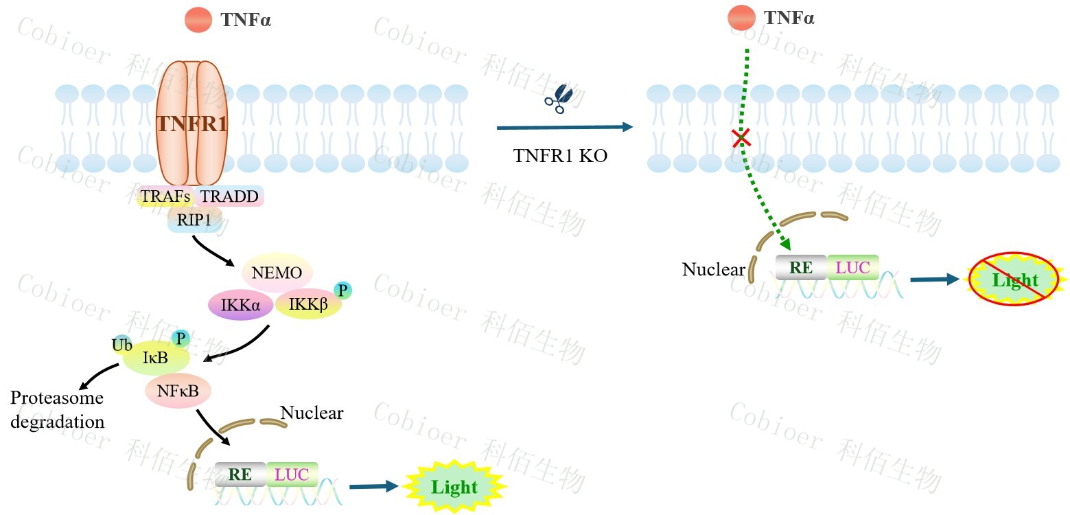 TNFR1 KO NFκB-Luc Jurkat 報(bào)告基因藥靶模型很好的模擬了體內(nèi) NFκB 的信號(hào)轉(zhuǎn)導(dǎo)過程,原理見下圖所示。![]() Figure 1. TNFR1 KO NFκB-Luc Jurkat 細(xì)胞模型原理圖 |
