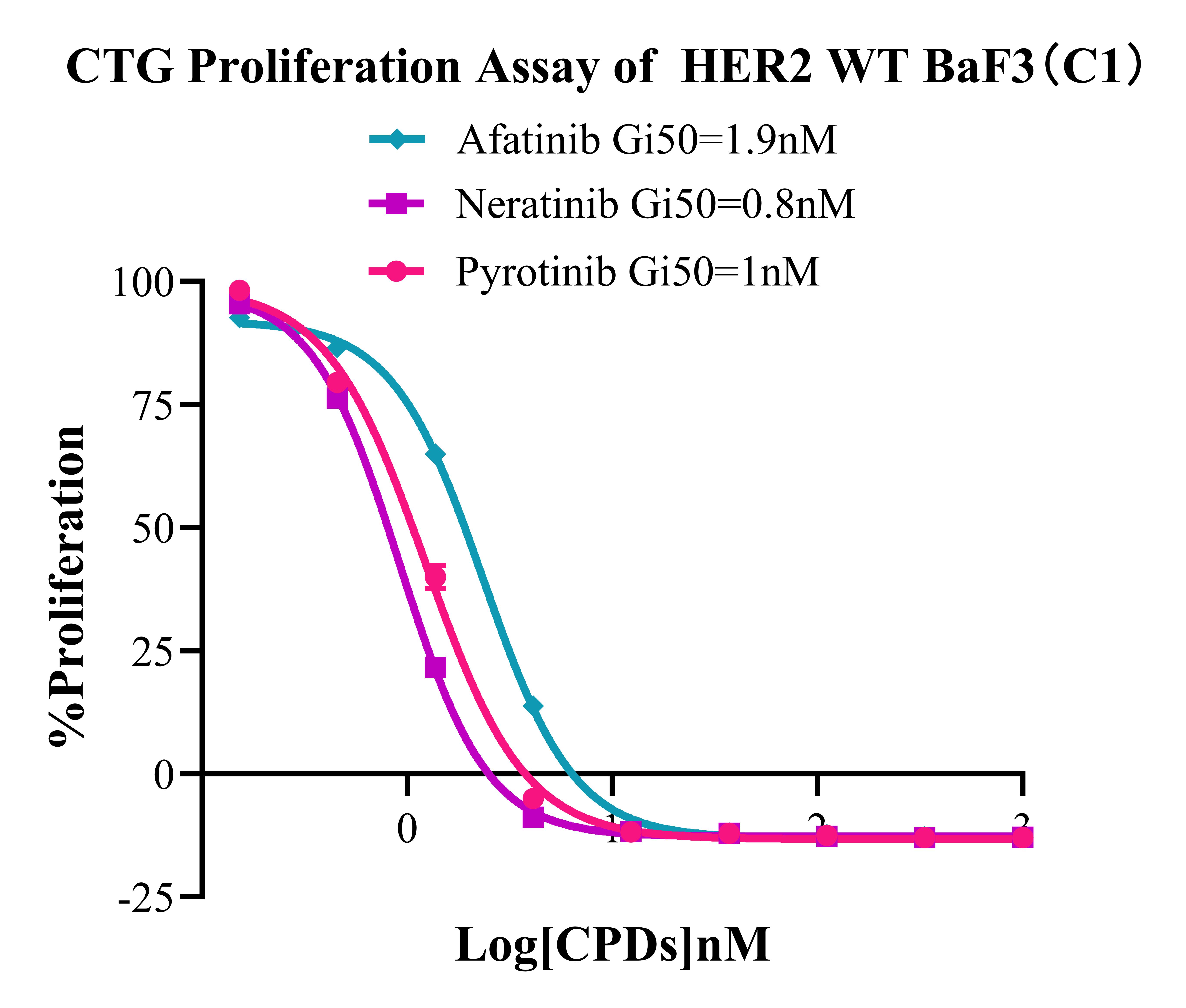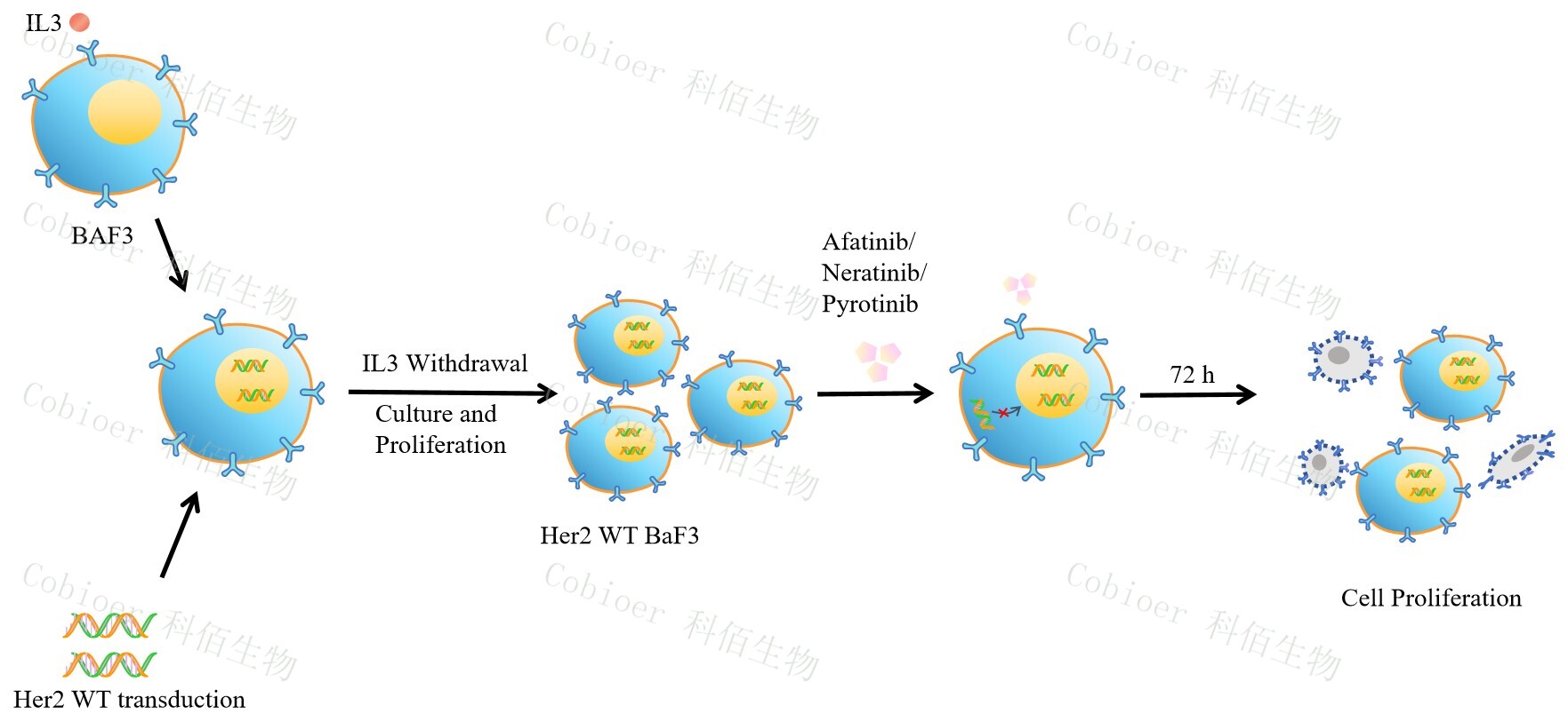HER2 WT BaF3 藥靶細胞,通過轉(zhuǎn)導 Her2 基因到 BaF3 細胞系中,穩(wěn)定 表達人突變形態(tài)下的 Her2 WT 基因。