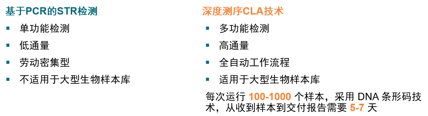 下表比較了用于細胞系認證的深度測序CLA和基于PCR的STR檢測: