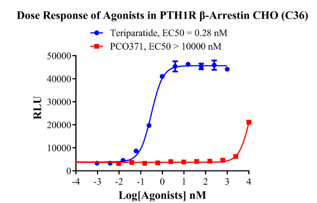 Figure 5.Dose Response of  Agonists in PTH1R β-Arrestin CHO (C36).