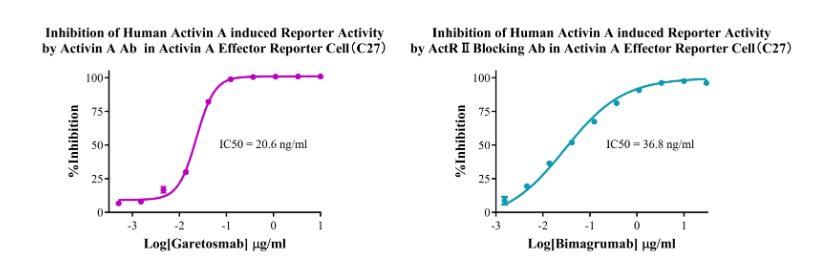 Figure 5. Inhibition of Human Activin A induced Reporter Activity by Activin A  Ab in Activin A Effector Reporter Cell(C27). Inhibition of Human Activin A induced Reporter Activity by ActR II Blocking Ab in Activin A Effector Reporter Cell(C27).
