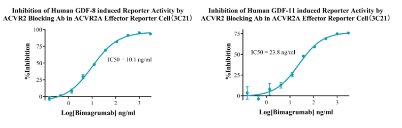 Figure 13.Dose Response of Recombinant Human Activin A  in ACVR2B Effector Cell(2C8).Dose Response of Recombinant Human GDF-8 in ACVR2B Effector Reporter Cell(2C8).Dose Response of Recombinant Human GDF-11 in ACVR2B Effector Reporter Cell (2C8).