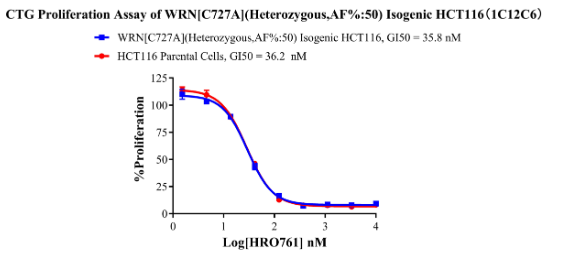 Figure 7. CTC Proliferation Assay of WRN[C727A](Heterozygous,AF%:50) lsogenic HCT116(1C12C6).