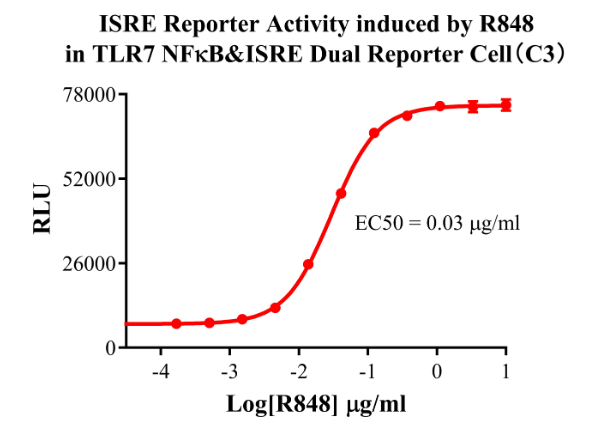 Figure 8. ISRE Reporter Activity induced by R848 in TLR7 NFκB&ISRE Dual Reporter Cell(C3).